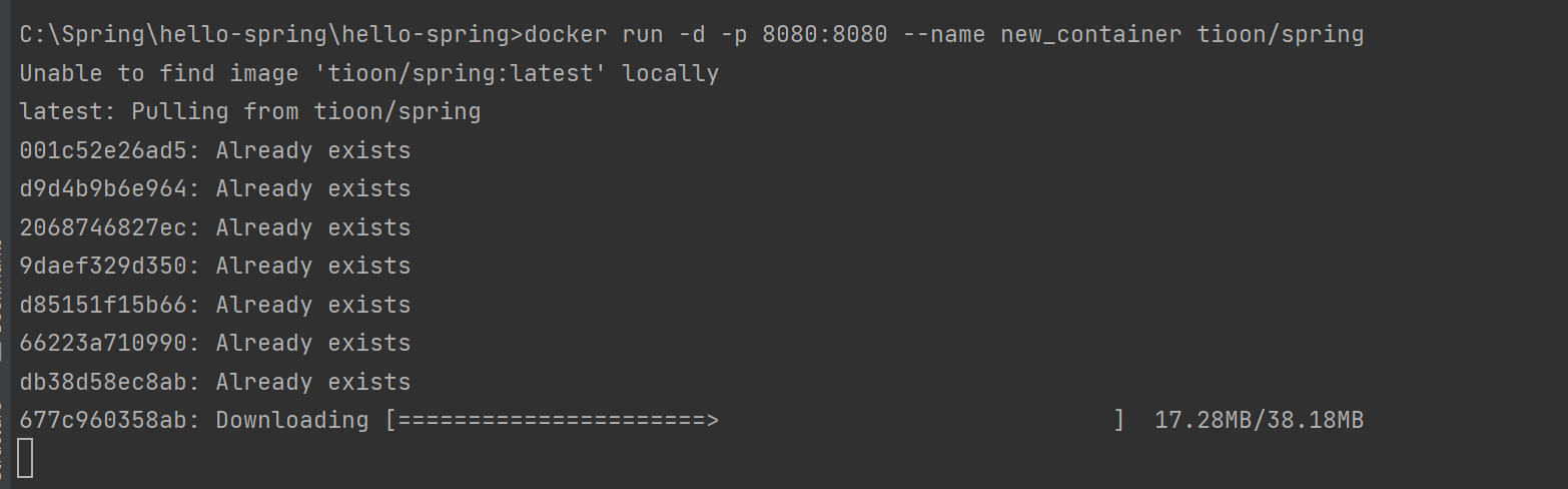 push했을때 문법과 동일하며, 이 문법으로 도커 허브에 있는 이미지를 가져올 수 있습니다.