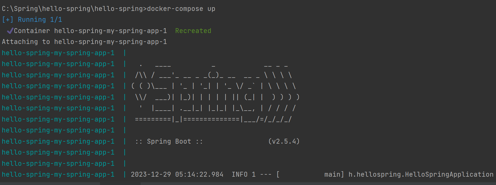 위와 같이 도커 컴포즈 파일이 있는 디렉토리에서 docker-compose up을 하면 도커에서 도커 컴포즈 코드를 보고 자동으로 도커 컨테이너들을 실행합니다.