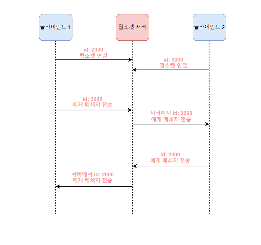 이런 id 값을 추가함으로써 웹소켓 서버에서 어떤 대상이 연결되어 있고, 메세지를 어떤 대상에게 전송해야하는지 알 수 있습니다.