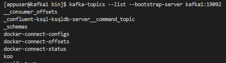 해당 명령어를 통해 현재 생성되어있는 카프카 토픽들의 정보 리스트를 볼 수 있습니다.