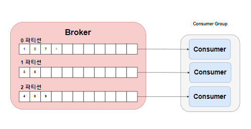- 즉, 파티션의 개수 >= consumer의 개수